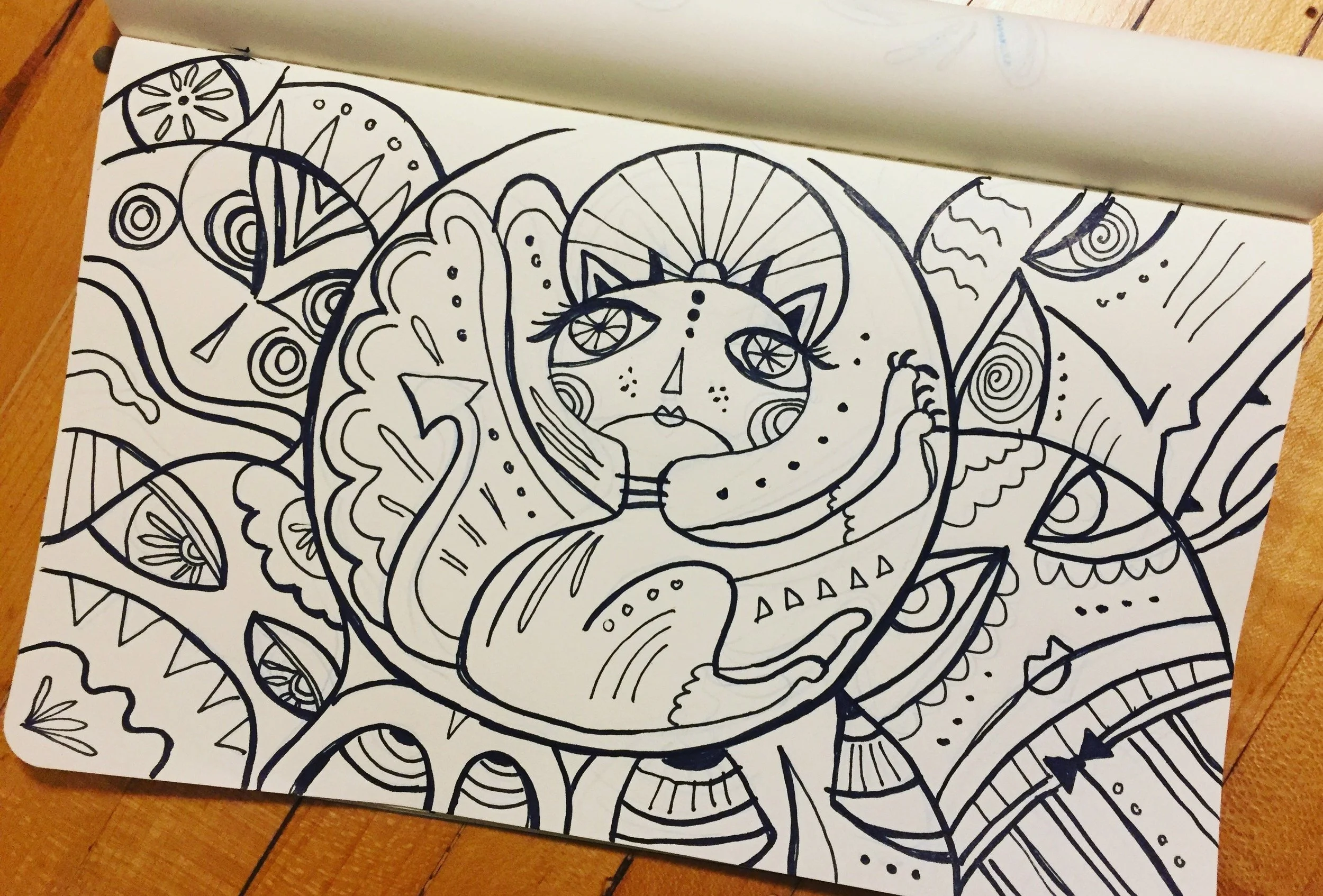 Because, growing up I was taught that being angry or loud is not good, I have recently created a cat character who comes out in my sketches when I am feeling negative emotions, it feels pretty great to be able to express those things in some way!